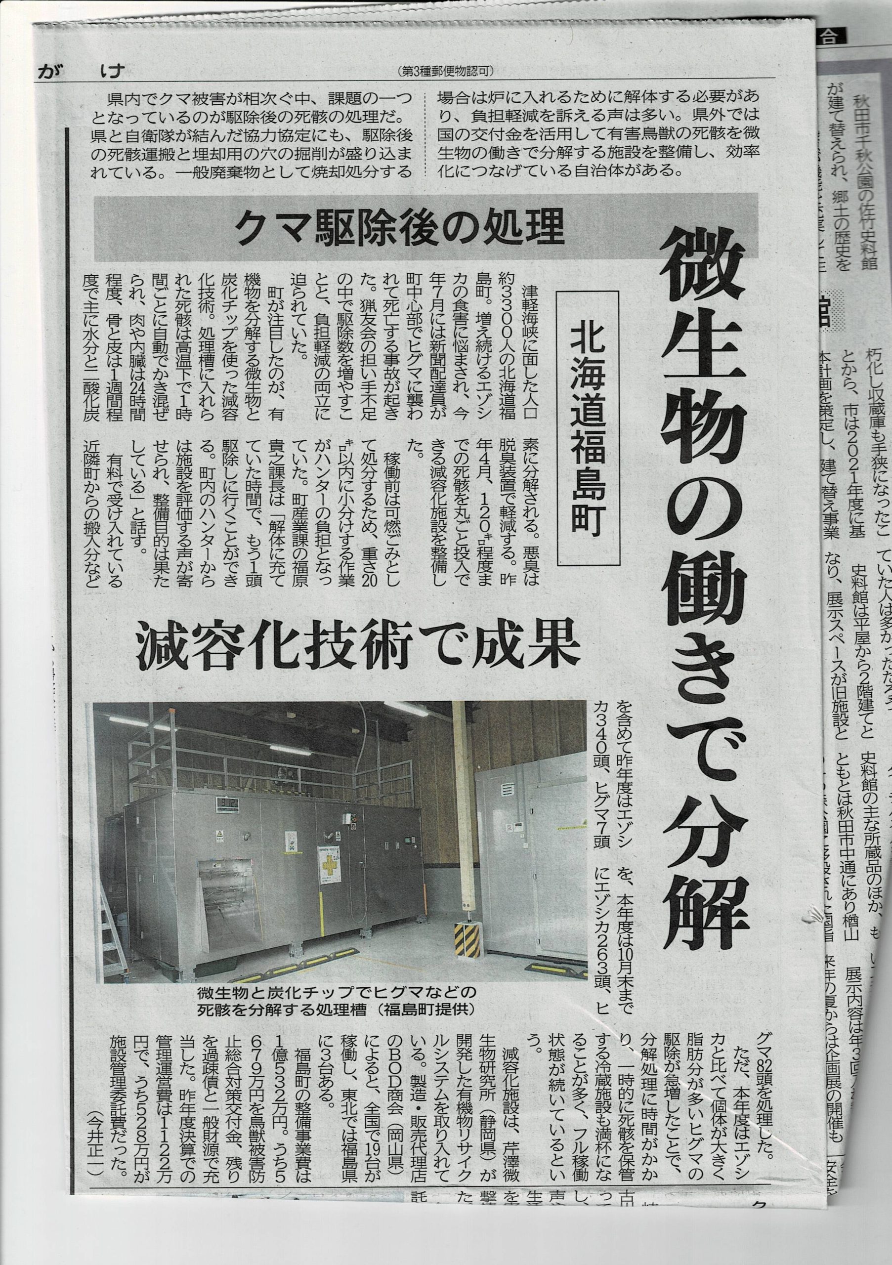 新聞各社に弊社有害鳥獣処理機の記事を掲載していただきました。